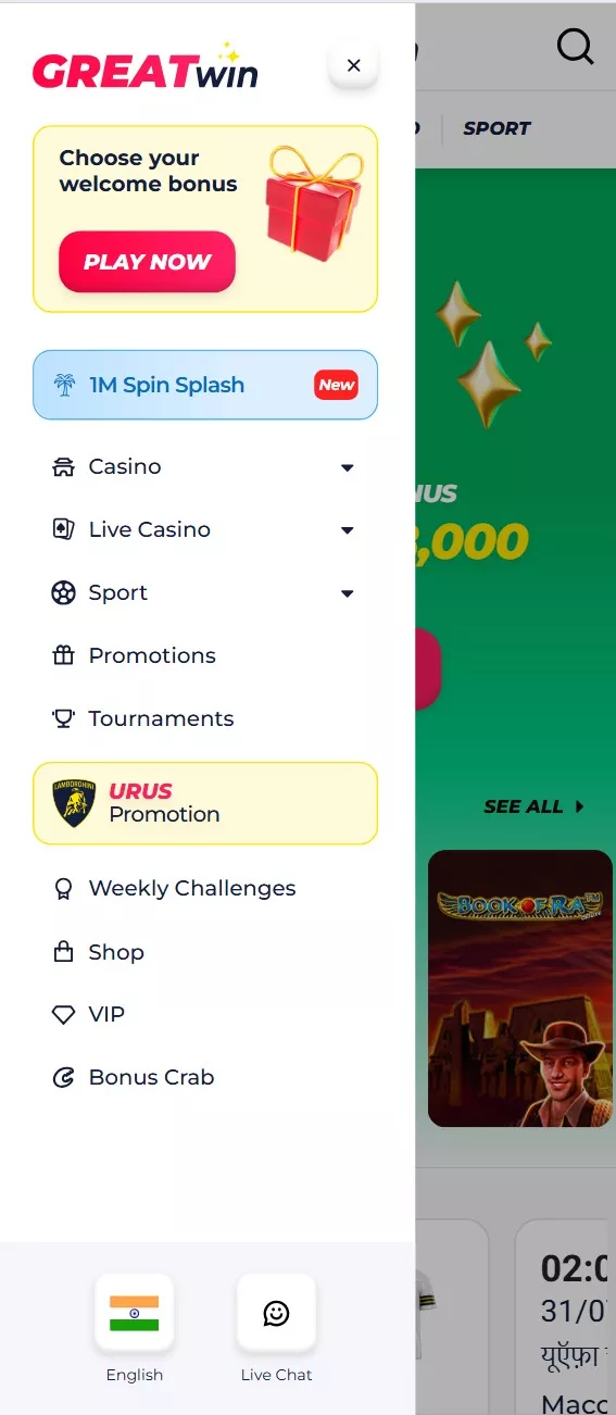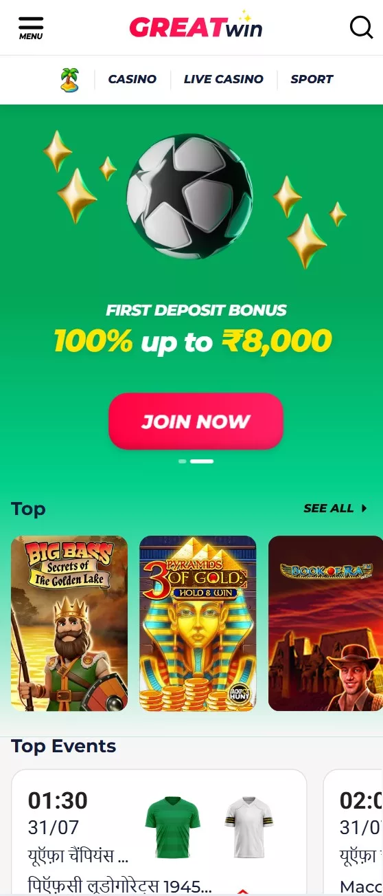 GreatWin serves India with an extensive array of sports competitions and casino titles. Global highlights and regional gems, strong odds, multiple bets, and thrilling Live play!